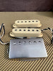 NOTE: All of our HSS sets come standard with Vintage Nickel covers on the humbucker and your choice of white, tan or black strat pickup covers. If you want a different cover on the humbucker or an uncovered set, please e-mail us for wait times.